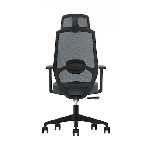 O modelo conta com encosto de cabeça ajustável, além de ajustes de altura, inclinação e braços, permitindo total adaptação ao usuário. Equipada com pistão a gás classe 4, suporta até 150 kg, oferecendo elevação suave, estabilidade e segurança.
