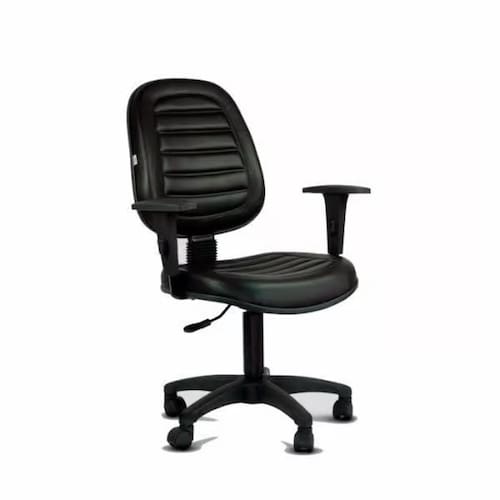 Peso suportado: 110kg Assento e Encosto em courvin preto com bordados Braço digitador regulável ou corsa fixo Base em metal com capa Regulagem da altura com pistão a gás Rodízios em nylon Altura min: 90cm Altura max: 100cm Marca: Não Informado