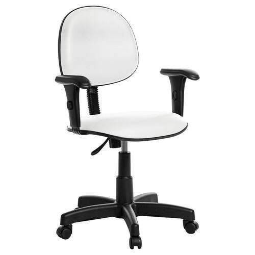 Cadeira de escritório executiva com braço rv branco Ideal para ambientes como: escritórios, corporativo, home office, consultórios, etc. Especificações: Revestimento: Cor do revestimento: branco; Tipo de revestimento: viena; Malha: 67% poliéster e 33% algodão; Material: vinil e c0urvin; Composição química: 13,8% de malha e 86,2% resina de vinila plastificada; Espessura aproximada: 0,09 cm +/-11% ; Detalhamento do assento: Espuma injetada de poliuretano; Largura 46 cm x espessura 5 cm x profundidade 42 cm; Detalhamento do encosto: Espuma injetada de poliuretano; Largura 40 cm x espessura 5 cm x altura 37 cm; Componentes da base giratória: Flange em aço preta; Pistão a gás preto, permite regulagem da altura; Estrela em aço com capa preta; Rodízios em nylon; Base possui raio externo de 28,5 cm, raio útil de 28 cm; Parafusos philips para montagem; Dimensões e peso montado: Altura do assento referente ao piso, mínima 42 cm, máxima 53 cm; Altura do topo do braço referente ao piso, mínima 59 cm, máxima 71 cm; Peso líquido aproximado: 11 kg; Peso bruto aproximado: 11,5 kg; Peso suportado: 110 kg uniformemente distribuídos; Dimensões da caixa: Largura 60 cm x profundidade 60 cm x altura 20 cm; Componentes inclusos: 01 assento executivo; 01 encosto executivo; 01 suporte de encosto com capa preto; 01 flange em aço preta; 01 pistão com capa preta; 01 estrela em aço com capa preta; 05 rodízios nylon preto; 02 braços reguláveis pretos; Parafusos para montagem philips; Manual de montagem. Montagem: A montagem deve ser realizada pelo cliente seguindo o manual de montagem. : 180 dias contra defeitos de fabricação, previstos em lei. Obs: Pode haver variação de tonalidade referente ao lote do revestimento conforme a resolução de computadores e smartfones.