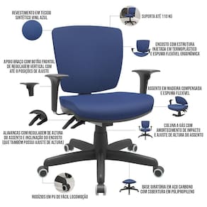 A Cadeira Executiva Giratória Flexi , é uma opção robusta e elegante para um ambiente de trabalho confortável. Essa cadeira combina elementos de design moderno e materiais duráveis para oferecer suporte ergonômico e resistência ao uso diário. Projetada para uso em ambientes de trabalho, essas cadeiras são conhecidas por sua estabilidade e durabilidade. O encosto baixo e assento estofado são características importantes dessa cadeira, pois fornecem apoio e conforto adicional para a lombar e ajudam a manter uma postura correta durante o período de ofício, é uma escolha funcional e esteticamente agradável para um ambiente de trabalho. Com seu design ergonômico, materiais resistentes e conforto adicional, essa cadeira oferece suporte adequado e durabilidade para enfrentar as demandas evitando assim o desconforto e fadiga ao longo do dia a dia no escritório. Além disso, apresenta recursos como altura ajustável, braços com regulagem vertical e rodízios para facilitar a movimentação ao redor do escritório. Adquira mais conforto para suas horas de trabalho! Dimensões do produto (L x A x P) 64 cm x 83 cm x 54 cm Medidas internas: Profundidade assento: 45 cm Largura assento: 49 cm Altura encosto: 41,1 cm Altura do chão ao assento: 45,8 á 56,6 cm Largura do encosto: 44 cm Características: Cadeira executiva, encosto com estrutura injetada em termoplástico. Apoio para braço com botão frontal de regulagem vertical, com até 8 posições de ajuste. Assento em madeira compensada e estofado em espuma ível, com coluna a gás e amortecimento de impacto. Possui alavancas de regulagem de altura do assento e inclinação do encosto. Revestimento em Vinil na cor Azul. Base giratória em Aço de Carbono com cobertura em polipropileno. Rodízios em PU de fácil locomoção. Possui certificado NR-17. Suporta até 120 kg. - Por se tratar de estofado as medidas podem ter uma pequena variação de até 3 cm. - A tonalidade do produto real poderá ter ligeira variação devido o lote de tecidos. Observações importantes: - A montagem será de responsabilidade do comprador; - Responsabilizamo-nos pela em todo território , até onde as rodovias alcançam, fluviais ou aéreas devem ser cotadas a parte; - Não nos responsabilizamos, no ato da , por subir escadas/elevadores ou por guincho em apartamentos. - Eventuais despesas são de responsabilidade do comprador; - Confira as dimensões do produto e certifique-se de que passará normalmente por supostos elevadores, portas, escadas e/ou corredores de sua residência; Material: Madeira, espuma | ProductInstructions: Produto para uso em ambiente interno, nao devendo ficar exposto ao sol, calor e umidade excessivos. | ProductLength: 67 cm | SizeDescription: Altura: 84 cm Largura: 65 cm Profundidade: 67 cm | ColorSimple: Azul | ColorFamily: Azul | Color: Azul | ColorSupplier: Azul | ProductHeight: 84 cm | MaterialFamily: Madeira | OriginState: PR | OriginCountry: | ProductContents: 01 Cadeira de Escritório | SupplierSimpleName: Cadeira de Escritório Executiva Office Base Giratória Preto Baixa Flexi P03 Vinil Azul - Lyam | ProductWarranty: 90 dias após o do produto | ProductWeight: 10 kg | Model: Flexi | ProductWidth: 65 cm