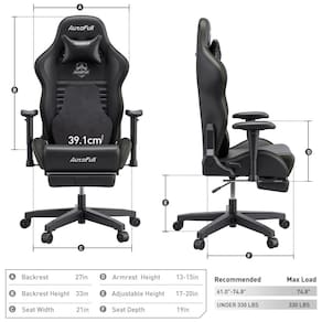 ADEQUADO PARA JOGOS E TRABALHO O AutoFull é dedicado a fazer a melhor cadeira de jogos e criar a experiência de jogo mais perfeita para jogadores profissionais. Dimensões 50 x 54 x 119 Dimensões da área de estar 38 x DESIGN ERGONÔMICO Apoio de braço rotativo lateralmente em 45 e altura de ajustável, superfície ergonômica em forma de U envolta em PU macio, que suporta perfeitamente o cotovelo. Equipado com uma almofada lombar de modelagem biónica 3D, que se adapta à curva da coluna lombar e dá lhe um apoio mais abrangente para a sua cintura. MULTI FUNCTION 360 giro, encosto da cadeira pode ser reclinado em qualquer ângulo entre 90 170 para trabalhar, jogar, ler ou cochilar, apoio de cabeça ajustável de altura de e travesseiro lombar, apoio para os pés retrátil, tudo para encontrar seu posição mais confortável. MATERIAL DE ALTA QUALIDADE A forte estrutura de metal integrada, base de náilon resistente é capaz de suportar até 158 kg. Material de fibra de carbono e couro sintético, fornece uma sensação de toque melhor, cilindro de 4 níveis certificado pela SGS, fornece proteção mais segura para você Marca: Não Informado