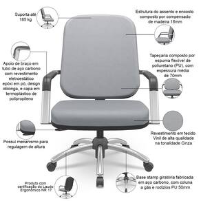 Color: Cinza | Com aro para pés: Não | Tipo de cadeira de escritório: Cadeira Giratória Operativa Plus Size | Cor: Cinza | ColorSimple: Cinza | Modelo: Magno | ColorFamily: Cinza | Formato de venda: Unitário | Modelo detalhado: Magno Giratória Base Cromada | ColorSupplier: Cinza | Com apoio de braços: Sim | Número de registrocertificação INMETRO: ABNT NBR 13962, NR 17 | Material do estofamento: Vinil | Com rodas: Sim | Material: Base Giratória de Aço Carbono, Espuma Flexível Poliuretano, Vinil | OriginCountry: Brasil | Requer montagem: Sim | Model: Magno | MaterialFamily: Vinil | Materiais do aro para pés: na | OriginState: PR | ProductWarranty: 90 dias após o recebimento do produto | ProductInstructions: Produto para uso em ambiente interno, nao devendo ficar exposto ao sol, calor e umidade excessivos. | ProductWeight: 25 kg | ProductLength: 73 cm | SizeDescription: Altura: 115 cm x Largura: 71 cm x Profundidade: 73 cm | ProductHeight: 115 cm | ProductWidth: 71 cm | SupplierSimpleName: Cadeira de Escritório Giratória com Braço Cromada Magno P03 Vinil Cinza - Lyam Decor | ProductContents: 01 Cadeira Giratória, manual de instruções