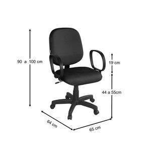 Base giratória sem relax e regulagem de altura com sistema a gás. Assento e encosto injetado e anatômico e tapeçado em tecido J. Serrano. Base e Braço na cor preta.