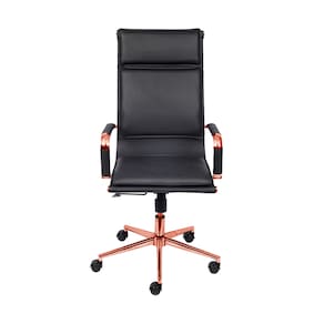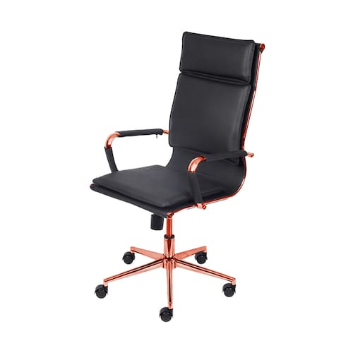Cadeira De Escritório Giratoria Eames Soft Preta - Alta | Rosé Especificações: Cadeira Estilo Presidente com encosto alto Base giratória em aço cromado e pigmentado na cor Desejada com cinco rodizios Função de ajuste de altura por pistão a gás Sistema de reclinamento tipo relax com trava no ponto inicial e ajuste de pressão para maior conforto Encosto com estrutura em aço cromado com revestimento em couro PU Assento com estrutura em aço cromado com revestimento em couro PU Braços em aço cromado com revestimento em couro PU removível Espuma com densidade controlada Peso máximo recomendado: 120 Kg Necessita montagem. Medidas: Encosto Largura: 43cm Altura: 61cm Altura máxima até o chão: 110cm Altura mínima até o chão: 102cm Assento Profundidade: 48cm Largura: 48cm Altura máxima do chão até o assento: 52cm Altura mínima do chão até o assento: 40cm Braços Comprimento: 38cm Largura: 4,5cm Altura máxima até o chão: 80cm Altura mínima até o chão: 72cm Itens inclusos 01 Cadeira desmontada Marca: Não Informado