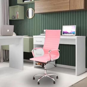 Descubra a elegância da Cadeira de Escritório Giratória Esteirinha Alta. Revestida em couro sintético, possui encosto alto e braços fixos em metal, perfeita para elevar seu home office ou escritório com estilo e ergonomia.