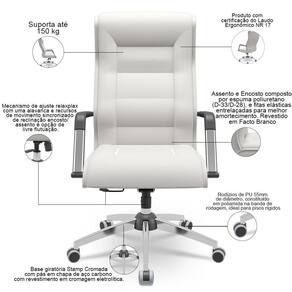 Color: Branco | ColorFamily: Branco | ColorSimple: Branco | ColorSupplier: Branco | Com apoio de braços: Sim | Com aro para pés: Não | Com rodas: Sim | Cor: Branco | Formato de venda: Unitário | Materiais do aro para pés: na | Material: Madeira, Poliuretano, Facto | Material do estofamento: Espuma de Poliuretano Injetada | MaterialFamily: Poliuretano | Model: Kirk | Modelo: Kirk | Modelo detalhado: Kirk | OriginCountry: Brasil | OriginState: PR | ProductContents: 01 Cadeira | ProductHeight: 119 cm | ProductInstructions: Produto para uso em ambiente interno, nao devendo ficar exposto ao sol, calor e umidade excessivos. | ProductLength: 81 cm | ProductWarranty: 90 dias após o recebimento do produto | ProductWeight: 23 kg | ProductWidth: 66 cm | Requer montagem: Sim | SizeDescription: Altura: 119 cm x Largura: 66 cm x Profundidade: 81 cm | SupplierSimpleName: Cadeira De Escritório Giratória Presidente Base Cromada Kirk P03 Facto Branco - Lyam Decor | Tipo de cadeira de escritório: Presidente Giratória