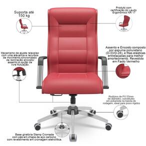 Projetada para quem busca o equilíbrio perfeito entre estilo e funcionalidade, a essa cadeira de escritório é a escolha ideal para líderes que valorizam a sofisticação e o conforto. Com um design imponente e elegante, ela se adapta a diversos ambientes, desde escritórios corporativos até home offices, isso porque cada detalhe foi desenvolvido para garantir a melhor experiência. A começar pela base cromada e pelo mecanismo Relax, os quais oferecem um visual moderno, além de um ajuste preciso da altura e inclinação do encosto.