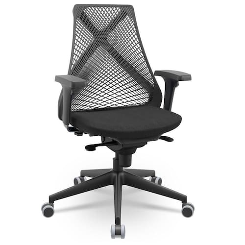 A começar pelo encosto telado com desenho X, que proporciona excelente ventilação e se adapta perfeitamente às curvas da sua coluna, oferecendo suporte lombar personalizado, ao passo que os braços com 3 tipos de regulagem com ajuste da altura, o giro e o avanço horizontal, tudo para que você encontre a posição ideal e evite tensões nos ombros e braços. Além disso, a essa cadeira giratória com rodízios permite fácil movimentação e rotação de 360, otimizando o seu espaço de trabalho.