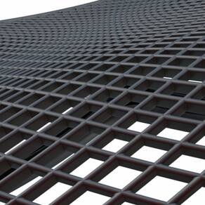 Encosto telado na cor Cinza com cantos arredondados e desenho de X composto por poliamida aditivada.