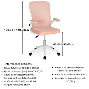 Profundidade Montado: 48 | Largura Montado: 59 | Altura Montado: 110 | Tonalidade: Rosa | Altura: 110 | Produto: Cadeira de Escritório Mônaco | Largura: 59 | Material da Estrutura: Metal | Cor: Rosa | Peso do Produto: 8 | Estado de Origem: SC | Material para Filtro: Tela Mesh | Largura do Produto (cm): 59 | Peso do Produto (Kg): 8 | Comprimento do Produto (cm): 48 | Altura do Produto (cm): 110 | Fabricante: Magazine Decor | Acompanha Almofada: Não | Garantia do Fabricante: 3 | Profundidade: 48 | Comprimento do Produto: 48 | Cômodo Indicado: Escritórios | Possui Pistão: Sim | Acompanha Braço: Sim | Altura do Produto com Embalagem (cm): 55 | Largura Produto Com Embalagem (cm): 30 | Comprimento Produto Com Embalagem (cm): 55 | Peso Produto Com Embalagem (Kg): 9 | Conteúdo da Embalagem: 1 Cadeira | Descrição do Tamanho: 110x59x48 | Necessita Montagem: Sim | Instruções/Cuidados: Não Limpar com Materiais Abrasivos | Nome do Simples no Fornecedor: Cadeira de Escritório Mônaco
