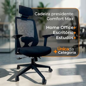 A Cadeira de Escritório Oficial Comfort Max foi desenvolvida para quem busca máximo conforto, resistência e design moderno em longas jornadas de trabalho ou estudo. Com estrutura reforçada e materiais de alta qualidade, ela oferece suporte ergonômico completo, ajudando a manter a postura correta e reduzir o cansaço ao longo do dia.