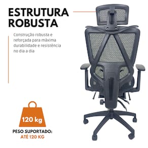 A limpeza pode ser realizada com um pano úmido e detergente neutro, garantindo a preservação do acabamento em Tela Mesh Nylon e a durabilidade da cadeira.