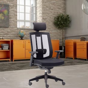 Descrição do produto: A Cadeira Presidente Song segue o design minimalista para elevar o patamar do escritório, home office ou ambiente corporativo. Simboliza perfeitamente a ergonomia com vários pontos positivos a se destacar, como: apoio de cabeça, braços, lombar ajustáveis, que somados ao mecanismo deslizante oferece várias combinações de adaptação de usuários de múltiplos biotipos. Uma cadeira confortável e agradável que irá agregar mais elegância e conforto ao seu ambiente.