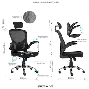 Transforme sua rotina de trabalho com a Cadeira Presidente prime.office NEW P100 VICKY e experimente o equilíbrio perfeito entre conforto, funcionalidade e design. Adquira agora e sinta a diferença no seu dia a dia!