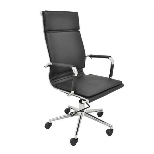Design contemporâneo que agrega elegância e estilo para o seu dia a dia. Cadeira Office com encosto alto, estrutura em aço cromado e revestida em PU, possui regulagem de altura do assento com pistão á gás e sistema relax, possui base giratória em aço cromado com rodízios em nylon. Acabamento da Estrutura: Pintura Almofada do assento: Fixa Altura do assento até o chão: 48 cm Ambiente: Escritório Complexidade da Montagem: Baixa: pode ser montado por uma pessoa sozinha Cor: Preto Cor: Preto Enchimento do Assento: Espuma D-23 Enchimento do Encosto: Espuma D-23 Escala de Brilho: Semi-Brilho Estrutura do Assento: Aço Cromado Estrutura do Encosto: Aço Cromado Giratória: Sim Itens Inclusos: 1 Cadeira e Manual de Instruções. Linha ou Coleção: Office Material da Base: aço cromado Necessita Montagem: Sim Peso: 12,2 kg Possui Apoio para Braços: Sim Possui Rodízio: Sim Recomendações de Uso, Manutenção e Limpeza: Limpar com pano macio umedecido em solução de água e sabão neutro e secar em seguida. Uso interno. Não expor ao sol ou umidade. Não exceder a capacidade de peso. Não utilizar produtos químicos ou abrasivos. Resistente à Chuva: Não Revestimento do Assento: Poliuretano Revestimento do Encosto: Poliuretano Sistema de Montagem: Parafusos Suporta Até (kg): 120 kg Tipo de Assento: Regulável Tipo de Encosto: Fixo