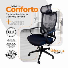 Projetada para quem exige conforto e postura durante longas horas de trabalho, a Cadeira Comfort Verona entrega ergonomia de ponta, materiais de qualidade e visual moderno.