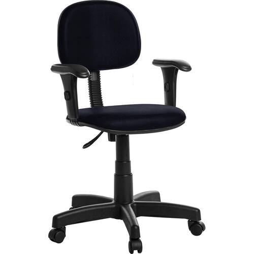 Cadeira de escritório secretaria com braço azul escuro rce Ideal para ambientes como: escritórios, corporativo, home office, consultórios, etc. Especificações: Revestimento: Cor do revestimento: azul escuro; Tipo de revestimento: c0uro ecológico; Malha: 50% poliéster e 50% algodão; Composição superficial: 93,2% pvc e 6,8% poliuretano; Espessura aproximada: 0,12 cm +/-11% ; Detalhamento do assento: Espuma injetada de poliuretano; Largura 42 cm x espessura 4 cm x profundidade 39 cm; Detalhamento do encosto: Espuma injetada de poliuretano; Largura 37 cm x espessura 4 cm x altura 29 cm; Componentes da base giratória: Flange em aço preta; Pistão a gás preto, permite regulagem da altura; Estrela em aço com capa preta; Rodízios em nylon; Base possui raio externo de 28,5 cm, raio útil de 28 cm; Parafusos philips para montagem; Dimensões e peso montado: Altura do assento referente ao piso, mínima 42 cm, máxima 53 cm; Altura do topo do braço referente ao piso, mínima 59 cm, máxima 71 cm; Peso líquido aproximado: 10 kg; Peso bruto aproximado: 10,5 kg; Peso suportado: 110 kg uniformemente distribuídos; Dimensões da caixa: Largura 60 cm x profundidade 60 cm x altura 20 cm; Componentes inclusos: 01 assento secretaria; 01 encosto secretaria; 01 suporte de encosto com capa preto; 01 flange em aço preta; 01 pistão com capa preta; 01 estrela em aço com capa preta; 05 rodízios nylon preto; 02 braços reguláveis pretos; Parafusos para montagem philips; Manual de montagem. Montagem: A montagem deve ser realizada pelo cliente seguindo o manual de montagem. : 180 dias contra defeitos de fabricação, previstos em lei. Obs: Pode haver variação de tonalidade referente ao lote do revestimento conforme a resolução de computadores e smartfones.