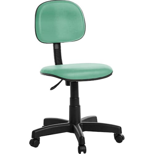 Cadeira de Escritório Secretaria RV Cor Turquesa IDEAL PARA AMBIENTES COMO: Escritórios, Corporativo, Home Office, Consultórios, etc. ESPECIFICAÇÕES: REVESTIMENTO: Cor do Revestimento: Turquesa; Tipo de Revestimento: Viena; Malha: 67% Poliéster e 33% Algodão; Material: Vinil e C0urvin; Composição Química: 13,8% de Malha e 86,2% Resina de Vinila Plastificada; Espessura aproximada: 0,09 cm +/-11% ; DETALHAMENTO DO ASSENTO: Espuma Injetada de Poliuretano; Largura 42 cm X Espessura 4 cm X Profundidade 39 cm; DETALHAMENTO DO ENCOSTO: Espuma Injetada de Poliuretano; Largura 37 cm X Espessura 4 cm X Altura 29 cm; COMPONENTES DA BASE GIRATÓRIA: Flange em aço Preta; Pistão a gás Preto, permite regulagem da altura; Estrela em Aço com Capa Preta; Rodízios em Nylon; Base possui raio externo de 28,5 cm, raio útil de 28 cm; Parafusos Philips para Montagem; DIMENSÕES E PESO MONTADO: Altura do assento referente ao piso, mínima 42 cm, máxima 53 cm; Peso Líquido aproximado: 8 kg; Peso Bruto aproximado: 8,5 kg; Peso suportado: 110 kg Uniformemente Distribuídos; DIMENSÕES DA CAIXA: Largura 60 cm X Profundidade 60 cm X Altura 20 cm; COMPONENTES INCLUSOS: 01 Assento Secretaria; 01 Encosto Secretaria; 01 Suporte de Encosto com Capa Preto; 01 Flange em aço Preta; 01 Pistão com Capa Preta; 01 Estrela em Aço com Capa Preta; 05 Rodízios Nylon Preto; Parafusos para montagem ¼ Philips; Manual de Montagem. MONTAGEM: A montagem deve ser realizada pelo cliente seguindo o manual de montagem. GARANTIA: 180 dias contra defeitos de fabricação, previstos em Lei. OBS: Pode haver variação de tonalidade referente ao lote do revestimento conforme a resolução de Computadores e Smartfones.