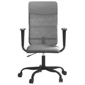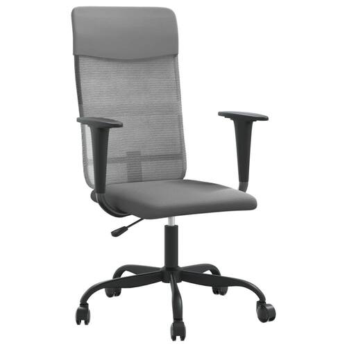 Esta cadeira de escritório com altura ajustável em um design cinza moderno combina estilo e função para enfeitar seu espaço de trabalho. Seu formato inteligente é combinado com um encosto de malha respirável e um assento confortável de couro sintético, tornando-o ideal para aquelas longas horas no computador ou durante reuniões.