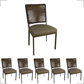 Código universal de produto: 7901287785716 | Fabricante: Aluminium Decor | Marca: Aluminium Decor | Modelo: Cadeira Itapema | Quantidade de cadeiras por conjunto: 6 | Materiais da estrutura: Alumínio,Oblongo com reforço interno,Revestido de pintura eletroestática | Material dos pés: Alumínio | Material do estofamento: Espuma D28 Revestido de Tecido Aquablock Impermeável | Enchimento do estofamento: Espuma D28 | Estilo: Moderno | Firmeza: Cadeira Super firme, resistente e leve | Largura da cadeira: 50 | Unidade de Largura da cadeira: cm | Altura da cadeira: 90 | Unidade de Altura da cadeira: cm | Profundidade da cadeira: 50 | Unidade de Profundidade da cadeira: cm | Largura do assento: 48 | Unidade de Largura do assento: cm | Profundidade do assento: 45 | Unidade de Profundidade do assento: cm | Espessura do assento: 5 | Unidade de Espessura do assento: cm | Altura do assento a partir do solo: 45 | Unidade de Altura do assento a partir do solo: cm | Peso: 5 | Unidade de Peso: kg | Peso máximo suportado: 150 | Unidade de Peso máximo suportado: kg | Requer montagem: Não | Tempo de montagem: | Unidade de Tempo de montagem: | Com assento almofado: Sim | É dobrável: | É empilhável: Não | É estofada: Sim | É cadeira de balanço: | É cadeira para exterior: | Inclui manual de montagem: Não | Linha: | Quantidade de lugares: | Com apoio de braços: | Formato de venda: | Unidades por kit: | de registro/certificação INMETRO: | Tipo de assento: | Material do assento: | Cor: fendi