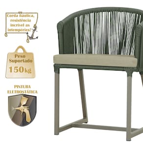 Fotos meramente ilustrativas. Tonalidades podem variar dependendo do monitor. Os objetos que ambientam as Fotos não acompanham o produto. Antes de comprar o seu produto verifique as medidas, o local onde pretende instalar e se necessário contratar o serviço de um profissional qualificado. Produto conhecido como: Cadeira Noronha, Cadeira de alumínio, Corda náutica, Estofado impermeável, Móveis de exterior, Cadeira resistente à água, Design moderno em Cadeira, Cadeira para área externa, Cadeira de jardim, Móveis para varanda, Cadeira durável, Cadeira de alta qualidade, Conforto em Cadeira, Cadeira elegante.