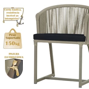 Fotos meramente ilustrativas. Tonalidades podem variar dependendo do monitor. Os objetos que ambientam as Fotos não acompanham o produto. Antes de comprar o seu produto verifique as medidas, o local onde pretende instalar e se necessário contratar o serviço de um profissional qualificado. Produto conhecido como: Cadeira Noronha, Cadeira de alumínio, Corda náutica, Estofado impermeável, Móveis de exterior, Cadeira resistente à água, Design moderno em Cadeira, Cadeira para área externa, Cadeira de jardim, Móveis para varanda, Cadeira durável, Cadeira de alta qualidade, Conforto em Cadeira, Cadeira elegante.