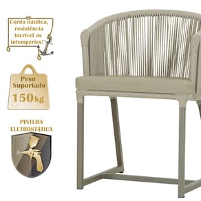 Fotos meramente ilustrativas. Tonalidades podem variar dependendo do monitor. Os objetos que ambientam as Fotos não acompanham o produto. Antes de comprar o seu produto verifique as medidas, o local onde pretende instalar e se necessário contratar o serviço de um profissional qualificado. Produto conhecido como: Cadeira Noronha, Cadeira de alumínio, Corda náutica, Estofado impermeável, Móveis de exterior, Cadeira resistente à água, Design moderno em Cadeira, Cadeira para área externa, Cadeira de jardim, Móveis para varanda, Cadeira durável, Cadeira de alta qualidade, Conforto em Cadeira, Cadeira elegante.