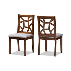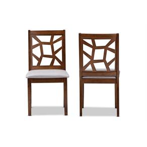 Com um encosto assimétrico e uma construção bonita e robusta, a cadeira de jantar Abilene elimina as suposições de montar um local de encontro estiloso. Este conjunto de duas cadeiras apresenta acabamento em madeira de nogueira sobre madeira de borracha maciça ecológica. Os assentos são acolchoados com espuma para maior conforto e estofados em tecido de poliéster cinza.