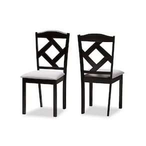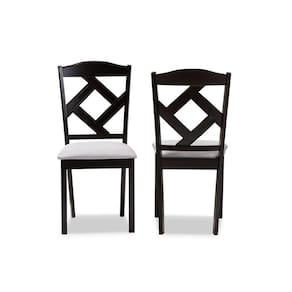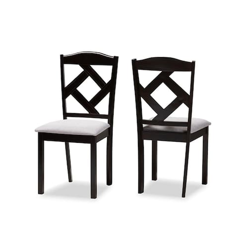 Perfeito para jantares diários com a família ou para tomar um café e um bolo com os amigos, o conjunto de duas cadeiras de jantar Ruth apresenta cadeiras de jantar casuais práticas para espaços compactos. Construída em madeira de borracha maciça, esta cadeira lateral de jantar com acabamento em marrom escuro apresenta um design geométrico no encosto da cadeira para um visual moderno e contemporâneo. Assentos estofados em tecido de poliéster arenoso, cheios de espuma, garantem o máximo conforto enquanto você se diverte e relaxa com a família e amigos.