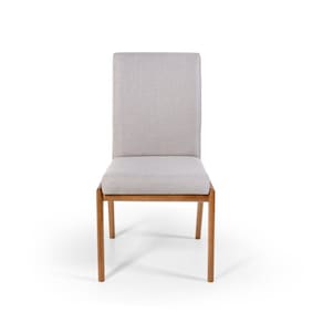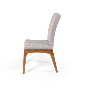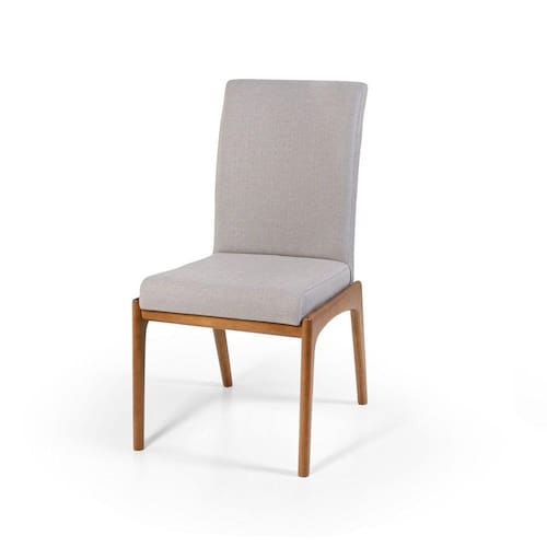 A cadeira é toda estofada em espuma de densidade 28, revestida com tecido de linho, trazendo durabilidade, toque macio e conforto à cadeira. É fabricada com madeira maciça Lyptus Grandis, com acabamento em selador nogueira fosco.