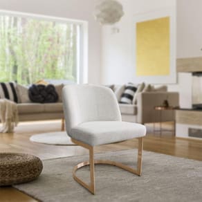 Cadeira De Jantar Cléo Base Ouro Fosco Linho Bouclé Off White - Nexta Casa Descrição do Produto Conforto é fundamental numa cadeira de jantar, não é mesmo? Com uma linguagem clássica e contemporânea, esta coleção de Cadeira Cléo tem como característica marcante sua base em aço, que contornam as curvas suaves valorizando seu design. Seu assento sobre chapas e acabamento de alto padrão, tornando-se um móvel resistente e duradouro. É encantadora, não é mesmo? Então não perca mais tempo e garanta a sua!