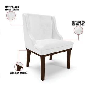 Experimente deixar sua decoração com bom gosto e qualidade com a cadeira de jantar Liz. É perfeita para você não abre mão de qualidade e requinte na hora das refeições e confraternizações com amigos e familiares. Produzida com Base Fixa Madeira Tabaco que suportam até 120 kg, estrutura ecologicamente correta de madeira de eucalipto e pinus, oferece durabilidade e qualidade ao móvel, seu estofamento é com espuma de densidade D-23, revestido em tecido Corano no tom branco. Sofisticada e excelente para deixar sua sala de jantar mais aconchegante. Compre sem sair de casa!