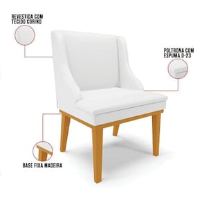 Experimente deixar sua decoração com bom gosto e qualidade com a cadeira de jantar Liz. É perfeita para você não abre mão de qualidade e requinte na hora das refeições e confraternizações com amigos e familiares. Produzida com Base Fixa Madeira Castanho que suportam até 120 kg, estrutura ecologicamente correta de madeira de eucalipto e pinus, oferece durabilidade e qualidade ao móvel, seu estofamento é com espuma de densidade D-23, revestido em tecido Corino no tom Branco. Sofisticada e excelente para deixar sua sala de jantar mais aconchegante. Compre sem sair de casa!