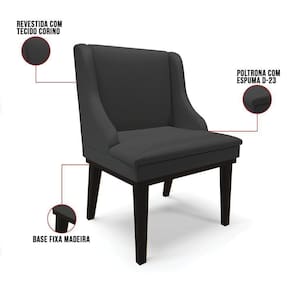 Experimente deixar sua decoração com bom gosto e qualidade com a cadeira de jantar Liz. É perfeita para você não abre mão de qualidade e requinte na hora das refeições e confraternizações com amigos e familiares. Produzida com Base Fixa Madeira Preto que suportam até 120 kg, estrutura ecologicamente correta de madeira de eucalipto e pinus, oferece durabilidade e qualidade ao móvel, seu estofamento é com espuma de densidade D-23, revestido em tecido Corino no tom Preto. Sofisticada e excelente para deixar sua sala de jantar mais aconchegante. Compre sem sair de casa!
