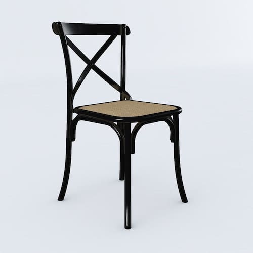 Cadeira de Jantar Cross Katrina em Aço Assento Corano para Mesa Sala Cozinha Moderna - Preto/bege