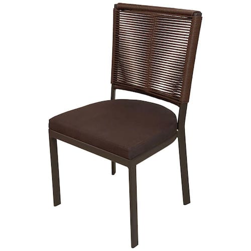 A cadeira ITAPEMA é produzida em alumínio tubo oblongo com reforços interno, com pintura eletro estática (epóxi) de alta qualidade e revestida com corda sintética (Coex) com proteção UV, no assento é utilizado uma madeira de MDF de 15 mm, espuma densidade D28 e revestido de tecido acquablock (Karsten) impermeável, nos pés são utilizadas sapatinhas de tecnil nylon que não danifica seu porcelanato e tem uma maior resistência a piso ásperos.