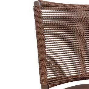 O encosto feito em corda sintética trançadas artesanalmente.