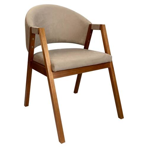 CARACTERÍSTICAS TÉCNICAS DA CADEIRA RAVENA: - Estrutura: Madeira Eucalipto Ecologicamente Correta; - Acabamento: Verniz na Cor Amêndoa; - Estofado: Assento e Encosto com Espuma D23; - Tecido: Suede Bege. *CADEIRA ENTREGUE MONTADA.