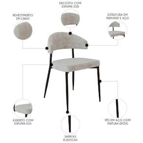 Sua adaptação e versatilidade são suas principais características, permitindo que seja utilizada em Sala de Jantar, restaurantes ou Escritório, ajustando-se perfeitamente a diferentes espaços. O encosto anatômico oferece conforto e suporte, proporcionando uma experiência agradável, enquanto a estrutura em aço com pintura epóxi garante durabilidade e resistência ao longo do tempo. O revestimento em linho lautrec, além de esteticamente sofisticado, é fácil de manter, enquanto o assento com espuma D33 oferece maciez e firmeza. O encosto, com espuma D28, combina conforto e estabilidade. Produzida com MDF/MDP no assento e encosto, a Cadeira Estofada alia design moderno e materiais de alta qualidade para proporcionar uma experiência de uso duradoura e confortável.