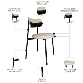 A estética refinada e a capacidade de adaptação a diferentes espaços são pontos chave da Cadeira Estofada, que a tornam ideal para Sala de Jantar, restaurantes ou ambientes de escritório. O encosto anatômico oferece excelente conforto e suporte, enquanto sua estrutura robusta em aço com pintura epóxi assegura durabilidade e resistência. O revestimento em linho com detalhe em sintético confere um toque de sofisticação e conforto, enquanto o assento com espuma D33, e o encosto com espuma D23, proporcionam um toque macio, garantindo um bom equilíbrio entre conforto e firmeza. Além disso, a utilização de MDF/MDP tanto no assento quanto no encosto da Cadeira garante uma base sólida e estável, completando o conjunto de características que fazem desta cadeira uma excelente escolha para quem busca qualidade, funcionalidade e estilo.