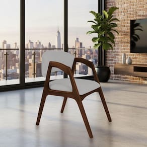 O assento com espuma de alta densidade D26 garante conforto prolongado, enquanto o encosto estofado com espuma D20 proporciona apoio suave e ergonômico. Revestida em tecidos nobres, a cadeira alia maciez e durabilidade, adaptando-se com facilidade a diferentes estilos de decoração.