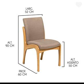 A Cadeira Lisboa vai se tornar a protagonista no seu ambiente. Dispõe de um design atual, permitindo montar diversas composições e agregar na decoração e conforto. Podem ser utilizadas em mesas de jantar, apoio extra na sala de estar, complementar ambientes ou onde você precisar. A Cadeira Lisboa é produzida com materiais de excelente qualidade, garantindo sua durabilidade e vida útil. CARACTERÍSTICAS TÉCNICAS: - Produzida em Madeira Maciça - Acabamento em Verniz na cor Mel - Assento Estofado Preenchido com Espuma D23 - Encosto Estofado Preenchido com Espuma D18 - Revestimento em Tecido Linho na cor Marrom Claro L87 - Cadeira Entregue Montada INFORMAÇÕES TÉCNICAS: Altura Total: 90 cm Altura Chão + Assento: 50 cm Altura Encosto: 44 cm Largura Total: 52 cm Largura Assento: 60 cm Profundidade Total: 60 cm Profundidade Assento: 56 cm Peso: 8 kg INFORMAÇÕES ADICIONAIS: Garantia para defeitos de fabricação conforme Código de Defesa do Consumidor. *Não nos responsabilizamos por subir ou içar o produto. **As imagens ambientadas são meramente ilustrativas e podem apresentar itens que não compõe o produto, as cores do produto podem variar de acordo com o monitor, a iluminação do ambiente ou sua percepção visual. ***Limpeza: Deve ser feita com pano macio e seco ou levemente umedecido com água e sabão neutro. Não devem ser utilizados abrasivos.