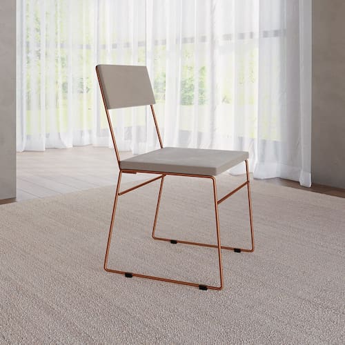 Cadeira de Jantar Estofada Málaga Base Cobre Veludo para Sala Cozinha Mesa e Decoração - Cobre/bege