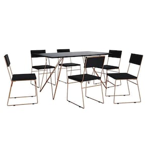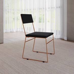 Cadeira De Jantar Estofada Málaga Base Cobre Veludo Preto - Cor: Preto