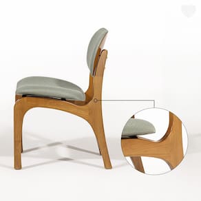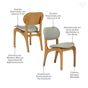 CARACTERÍSTICAS TÉCNICAS: - Produzido em Madeira Maciça Sustentável - Acabamento em Verniz na cor Castanho - Assento Estofado Preenchido com Espuma D-23 - Encosto Estofado Preenchido com Espuma D-18 - Tecido de Alta Qualidade em Linho na cor Verde L84 - Cadeira Entregue Montada