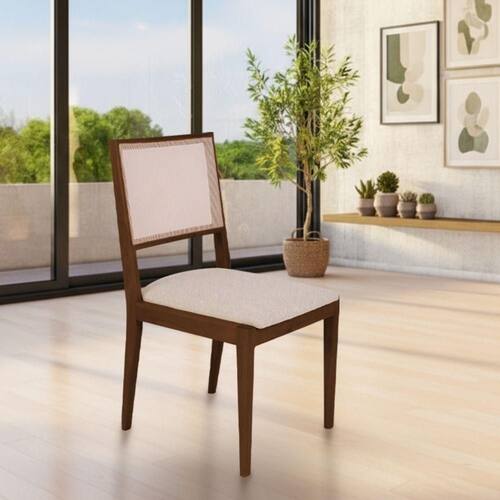 AS IMAGENS SÃO MERAMENTE ILUSTRATIVAS E PODEM SOFRER VARIAÇÕES DE COR E PEQUENOS DETALHES DE ACORDO COM O SEU MONITOR, ILUMINAÇÃO DO AMBIENTE E ATÉ MESMO A SUA PERCEPÇÃO VISUAL.Cadeira de Jantar Estofada Suellen Mel Linho Bege