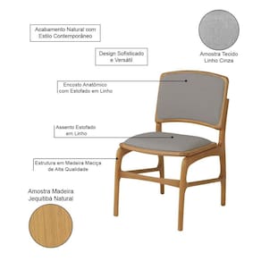 AS IMAGENS SÃO MERAMENTE ILUSTRATIVAS E PODEM SOFRER VARIAÇÕES DE COR E PEQUENOS DETALHES DE ACORDO COM O SEU MONITOR, ILUMINAÇÃO DO AMBIENTE E ATÉ MESMO A SUA PERCEPÇÃO VISUAL.Cadeira de Jantar FlorenÃa Jequitibà Natural Encosto em Linho Tecido Premium Linho Cinza