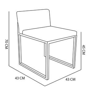 - Largura Total: 43 cm; - Altura Total: 70 cm; - Profundidade Total: 43 cm; - Altura do encosto: 20 cm; - Altura do chão até o assento: 45 cm; - Produto estofado; - Pés em ferro de excelente qualidade, suporta até 150kg;