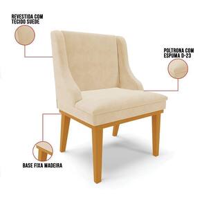 Cadeira De Jantar Liz Suede Base Fixa Madeira Castanho - D'rossi Cor Bege