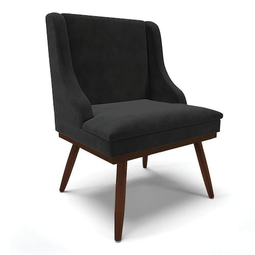 Cadeira De Jantar Liz Suede Base Fixa Madeira Pés Palito Tabaco - D'rossi Cor Preto